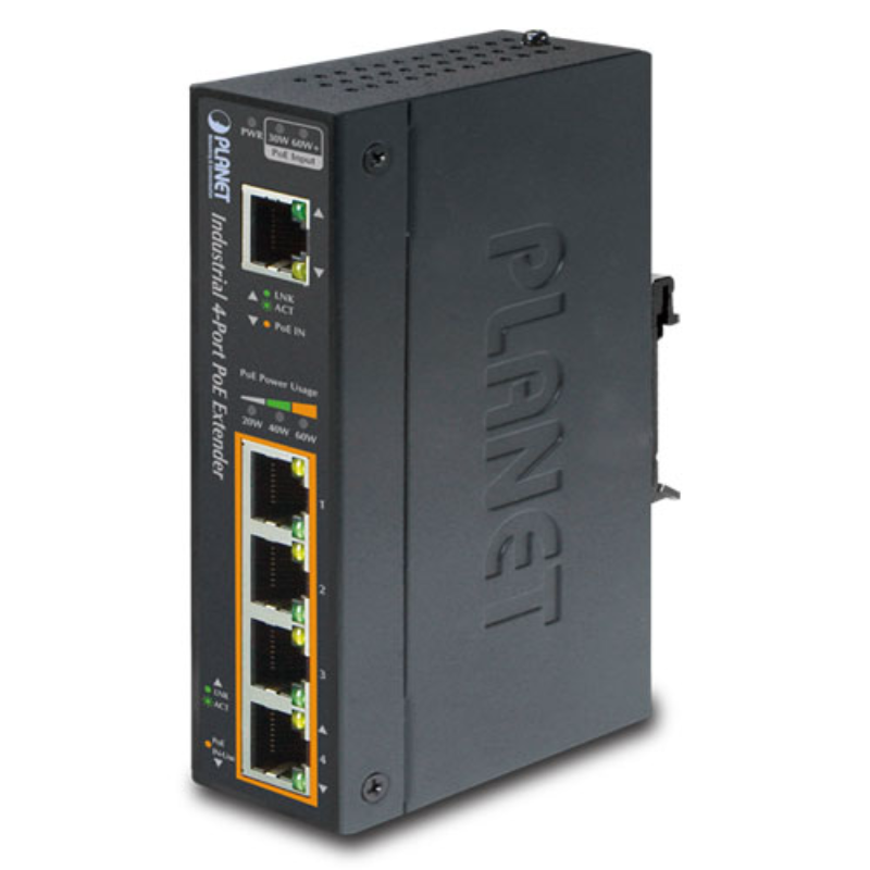 Planet Industrial Ultra 1 Port Gigabit PoE Extender with 4 Port 802.3bt/at