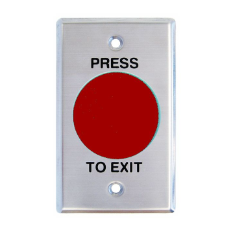 Exit Button, Big Mushroom, Red, Standard Stainless Steel Plate, Momentary