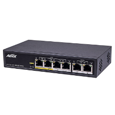 Aetek 4 Port Unmanaged PoE Switch, 2x 100Mb RJ45, EX Mode, 65W