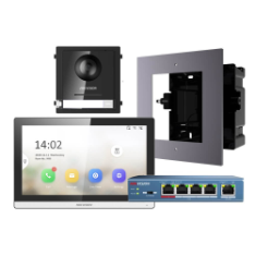 Hikvision 2nd Gen IP Intercom Kit, 1 to 1 Modular, PSU, PoE Switch, Surface Mount