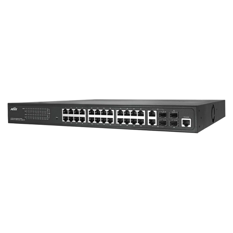 The Aetek AET-C6024430600U is an L2 PRO managed PoE switch designed for IP surveillance and networking applications. It features 24-port gigabit PoE with up to 30W per port, 2 x RJ45/SFP combo ports, and 2 x additional SFP slots (100M/1G) to support flexible uplink options. With a 420W PoE power budget, it efficiently powers a wide range of IP cameras and PoE-enabled devices across enterprise and security environments.