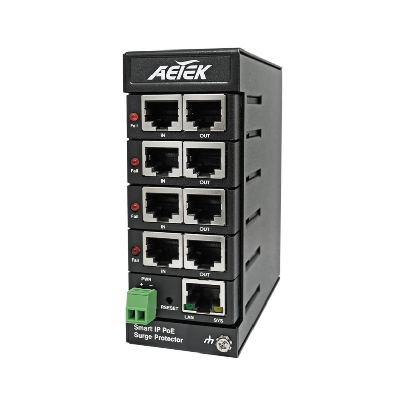 The Aetek AET-SD-504 is a modular PoE surge protector that shields IP cameras and network gear from power and data surges. It supports 802.3af/at/bt and offers easy slide-in module replacement, smart status monitoring, and reliable protection for harsh environments, helping maintain stable and safe PoE network performance.