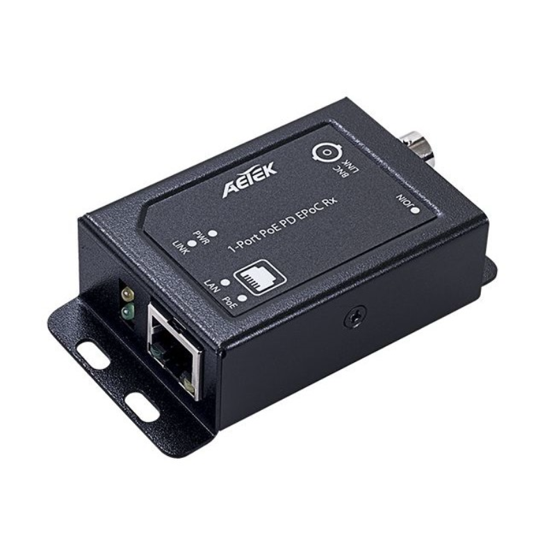 The Aetek AET-XE11-110-RX is a long-reach solution providing fast ethernet and PoE over RG6 coaxial cable up to 1200m (3937ft) for any brand of PoE IP camera. This EPoC product line is also often used to upgrade legacy CCTV to IP surveillance without requiring a change to existing RG59/RG6 coaxial cable. Furthermore, this outdoor EPoC solution is a rugged and economical alternative to using optical fibre, as the power over coax to remote PoE IP camera is more convenient than an optical fibre solution which often doesn't carry power.