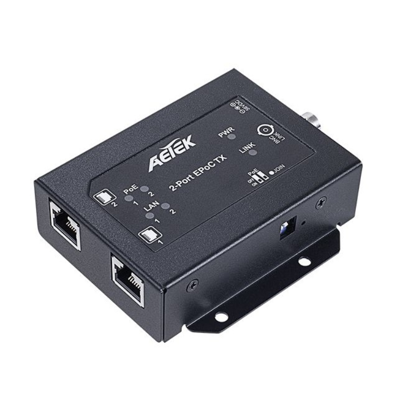 The Aetek AET-XE12-120-TX is a long-reach solution providing fast ethernet and PoE over RG6 coaxial cable up to 1200m (3937ft) for any brand of PoE IP camera. This EPoC product line is also often used to upgrade legacy CCTV to IP surveillance without requiring a change to existing RG59/RG6 coaxial cable. Furthermore, this outdoor EPoC solution is a rugged and economical alternative to using optical fibre, as the power over coax to remote PoE IP camera is more convenient than an optical fibre solution which often doesn't carry power.