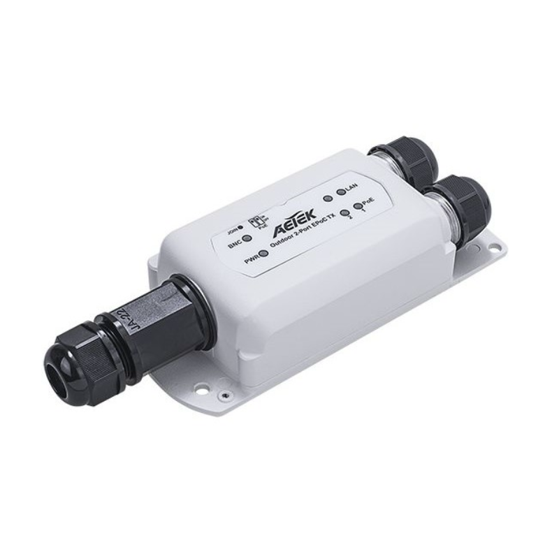 The Aetek AET-XE22-120-TX is a long-reach solution providing fast ethernet and PoE over RG6 coaxial cable up to 1200m (3937ft) for any brand of PoE IP camera. This EPoC product line is also often used to upgrade legacy CCTV to IP surveillance without requiring a change to existing RG59/RG6 coaxial cable. Furthermore, this outdoor EPoC solution is a rugged and economical alternative to using optical fibre, as the power over coax to remote PoE IP camera is more convenient than an optical fibre solution which often doesn't carry power.