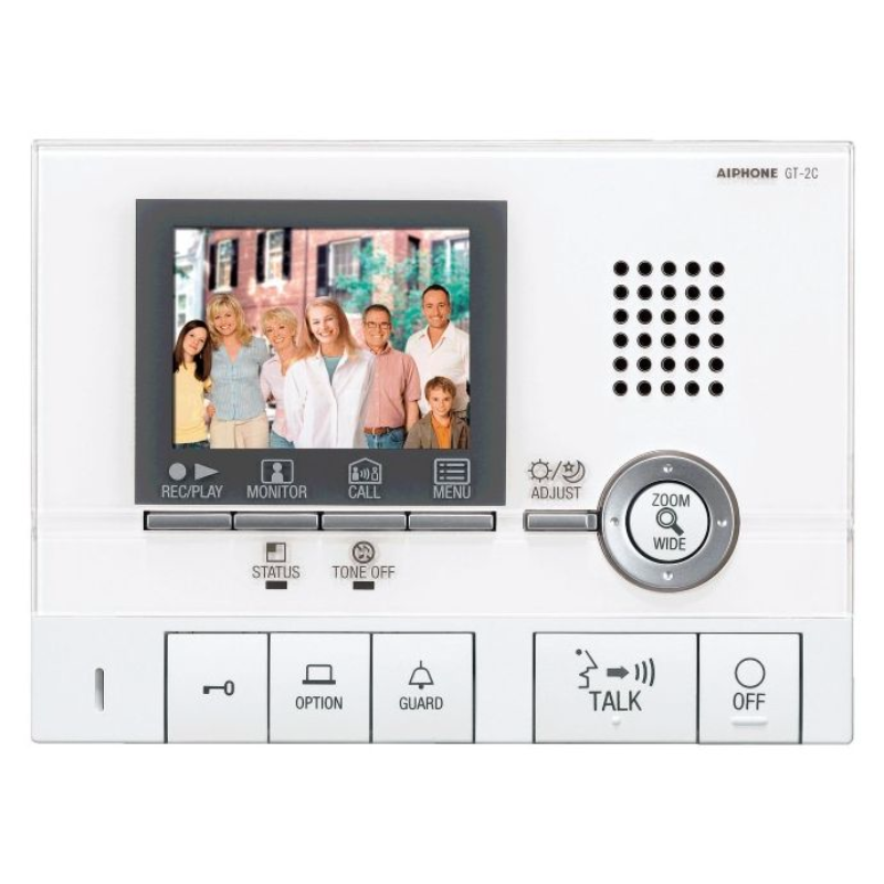 Suite security connects up to 4 alarm or utility sensors to the GT-2C. When activated, the siren sounds whilst alerting doorman/security stations of trouble. GT-2C allows for internal communication to talk between GT-2H sub stations (up to 3 subs). The GT-2C also provides picture memory, 170 degree pan, tilt and zoom camera control, and an optional handset.