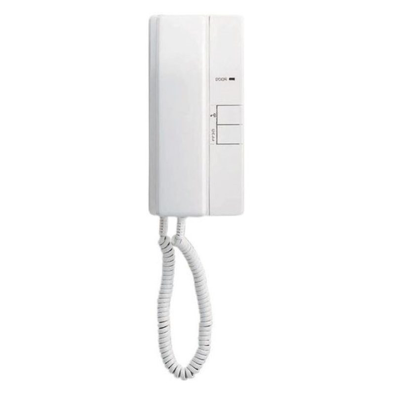 The Master handset allows communication with a single IE series door station. Door call-in is announced with a four stroke chime and an LED indicator. The IE-1GD features a handset for private communication, a door release button, chime volume control and a button to call sub handsets (IEH-1CD). Maximum three IEH-1CD may be connected in a system.