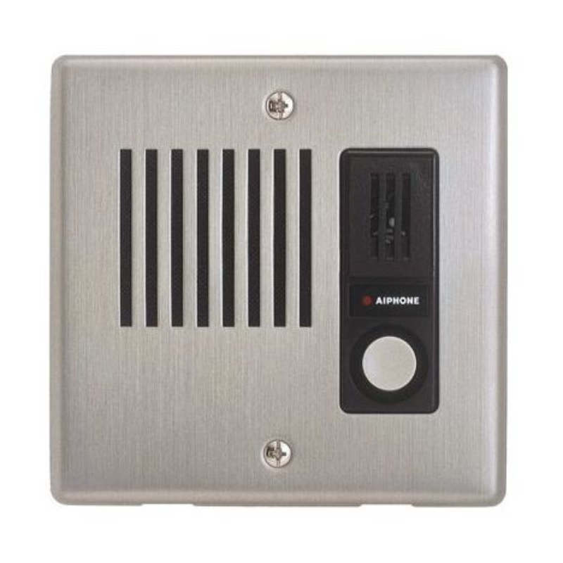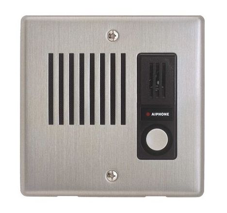 The AI-IE-JA is a flush mount door station designed to fit a 2-gang box. The unit features a stainless steel faceplate, call button, speaker and mic for communication and a green locator LED.