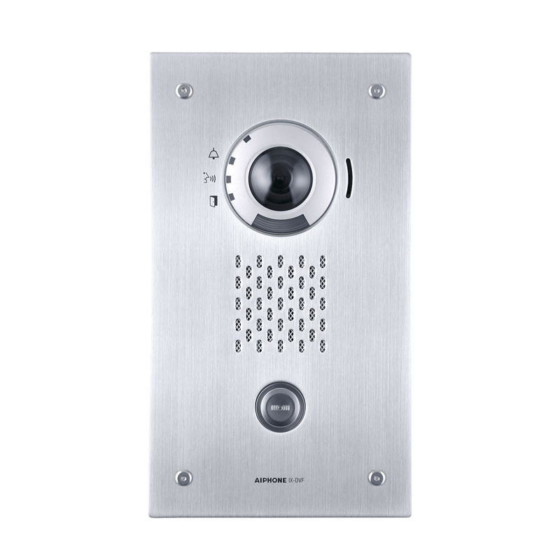 The Aiphone AI-IX-DVF is a flush mount, weather resistant (IP65) and IP addressable video door station. This station is equipped with a 1.23MP fixed colour camera and can connect to a network using Cat-5e/6 cable.