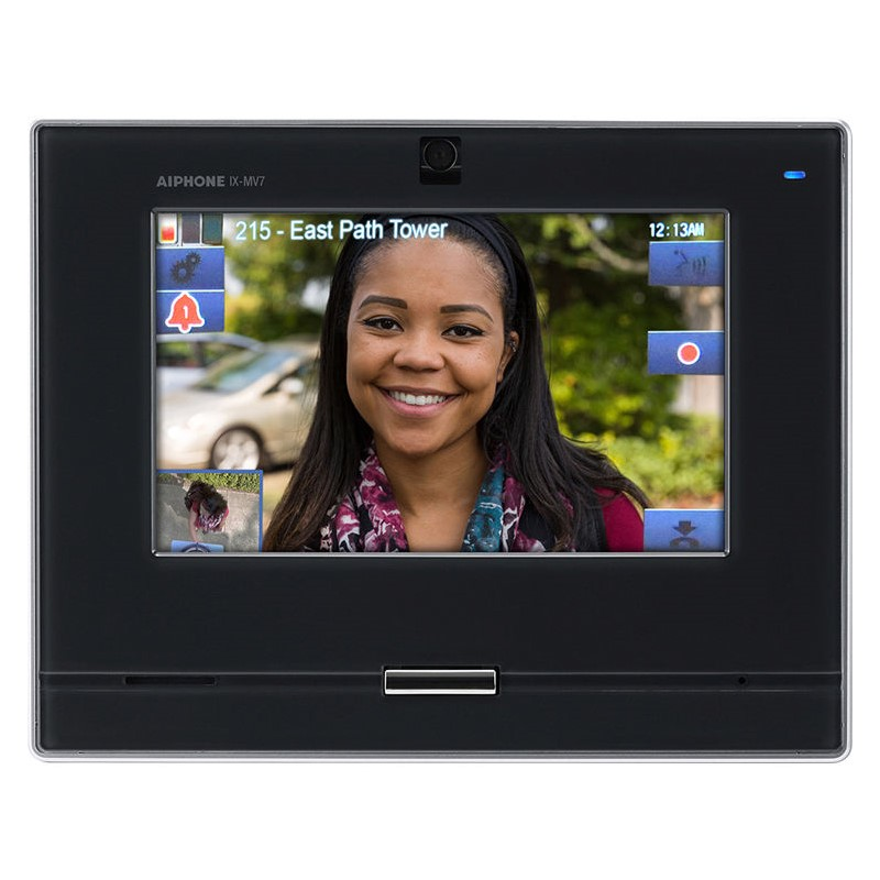 The Aiphone AI-IX-MV7-B is an IP addressable, hands-free master station with a 7" colour touchscreen. This master station has 8 speed dial buttons that can be used to call, page, monitor, or control a contact closure. The AI-IX-MV7-B can release the door that is associated with the station that it is communicating with. This master station is available in black or white.