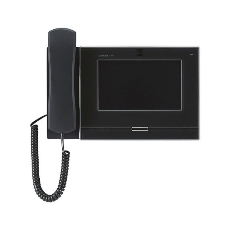 The Aiphone AI-IX-MV7-HB is an IP addressable hands-free or handset master station with a 7" colour touchscreen. This master station has 8 speed dial buttons that can be used to call, page, monitor, or control a contact closure. The AI-IX-MV7-HB has the ability to release the door that is associated with the station that it is communicating with. This master station is available in black or white.