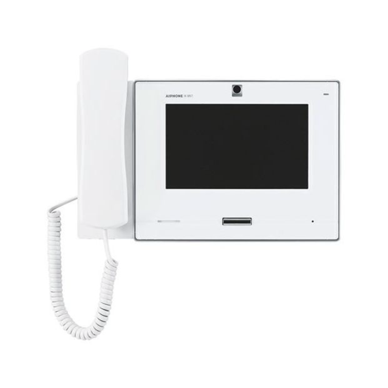 The Aiphone AI-IX-MV7-HW is an IP addressable hands-free or handset master station with a 7" colour touchscreen. This master station has 8 speed dial buttons that can be used to call, page, monitor, or control a contact closure. The AI-IX-MV7-HW has the ability to release the door that is associated with the station that it is communicating with. This master station is available in black or white.
