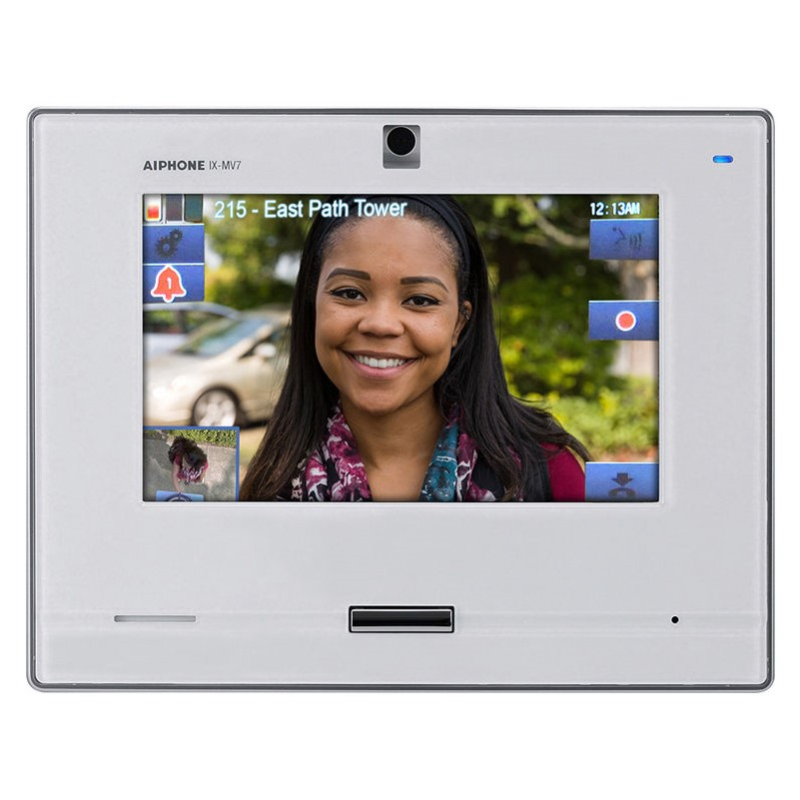 The Aiphone AI-IX-MV7-W is an IP addressable, hands-free master station with a 7" colour touchscreen. This master station has 8 speed dial buttons that can be used to call, page, monitor, or control a contact closure. The AI-IX-MV7-W can release the door that is associated with the station that it is communicating with. This master station is available in black or white.