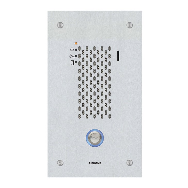 The Aiphone AI-IX-SSA is a flush mount IP addressable door station. It is weather resistant (IP65) and connects to a network using Cat-5e/6 cable. It is SIP compliant and can be used with or without other IX Series stations. The station can be programmed to call up to 20 different stations and there are 3 different call levels to choose from.