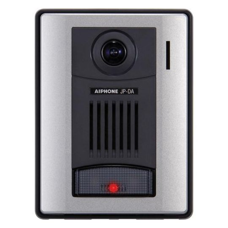 The AI-JP-DA is a surface mount door station used with the JP hands-free, color video entry series. The unit mounts to a 1-gang box and is made from sturdy ABS plastic with a clear polycarbonate lens cover. The JP-DA features a color 1/4" CMOS camera, speaker and mic for communication, illuminated call button and white illumination LED for low light conditions.