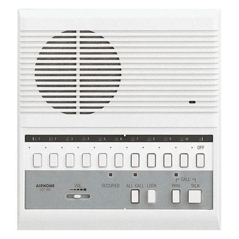The AI-LEF-10S is a selective call open voice system master station with the capacity of up to 11 total stations. Any combination of subs and masters can be used up to its maximum capacity. The LEF-10S has the ability to place and all call to all stations in the system (requires BG-10C).