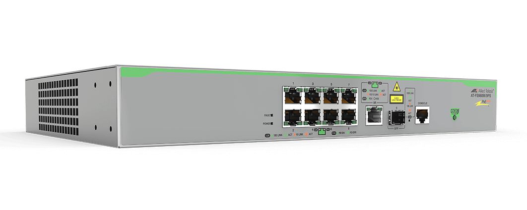 The AT-FS980M9PS-5 switch features centralised network management via Allied Telesis' autonomous management framework (AMF), and a redundant system with virtual chassis stacking (VCStackTM). This high-performing switch delivers flexible uplink connectivity and lower management costs.