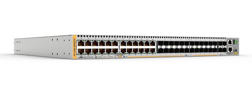 The Allied Telesis AT-X930-28GSTX is a stackable gigabit layer 3 switch with 10G uplinks that provides resiliency, reliability and high performance, making it ideal for distribution and network core solutions.