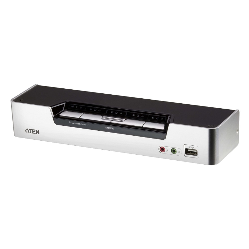 The CSD-KVA-CS-1794 is a 4-port USB HDMI KVMP switch from ATEN, designed to control up to four HDMI-enabled devices from a single console while sharing USB peripherals and audio. This switch is a stylish and functional solution for users who want to streamline their workspace while maintaining high-quality video and audio performance.