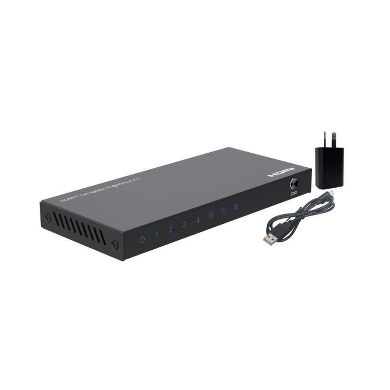 This 4-port 4K HDMI splitter lets you share four HDMI displays or projectors with an HDMI-enabled audio / video source device, such as a computer, Blu-ray player or cable TV, set-top box. With support for Ultra HD (4K) the HDMI splitter ensures astonishing picture quality, four times the resolution of high-definition 1080p. The 4K splitter is also backwards compatible with previous HDMI revisions, supporting 1080p / 720p HDMI video resolution devices. Even if you don't require 4K video today, this 4 port splitter ensures you'll be ready to take advantage of tomorrow's display technology.