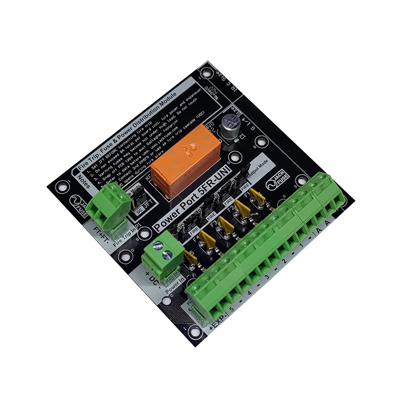 The Jack Fuse CSD-PP5FR-UNI is a 5FR power port distribution module for electronic access control systems and includes 5 self-healing fuses and fire trip interfaces with a 5-15V DC input voltage range. This new addition to the power port range includes removable sections and multiple mounting holes that enable it to be directly mounted in the same footprint as popular Gallagher and Inner Range expanders.