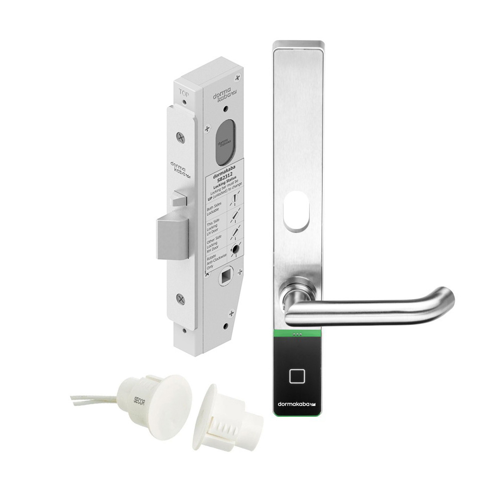 The DK-PROM-KIT-30 kit includes Dormakaba's C-Lever Pro wireless lock, the SB2312 mortice lock and one CSD-2002 reed switch. The C-Lever Pro is monitored; however, a reed switch is required.