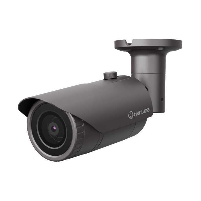 Monitor an indoor or outdoor area with the dark grey Q Series HAN-QNO-7012R 4MP Network Bullet Camera from Hanwha. This unit uses a 1/3" CMOS image sensor to capture 2560 x 1440 resolution video at 30 fps. IR LEDs provide up to 65' of night vision. A 2.8mm fixed lens delivers a 107.5 degrees horizontal field of view. The camera features an audio input, along with an onboard memory card slot that accepts microSD/SDHC/SDXC cards up to 128GB (available separately). Integrated PoE technology simplifies connectivity by transferring data and power through a single cable.