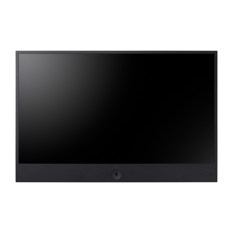 Hanwha's HAN-SMT-2731PV is a 27 inch LED AI PVM monitor with PIP/PBP functionality in black with a 2MP AI camera. The monitor has face detection display for visual deterrent with coloured bounding box around detected faces. HAN-SMT-2731PV supports image slide shows without requiring an extra SD Micro Card or USB. It also supports uploading logo images.