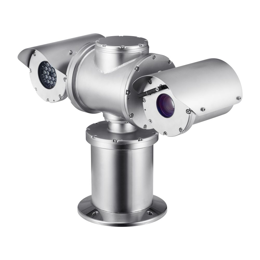 Hanwha's HAN-TNU-6322ER is an explosion proof positioning camera that utilises a 316L stainless steel housing for maximum corrosion and explosion resistance with a vandal rating of IK10, a water/dust ingress rating of IP67 and a built-in wiper.