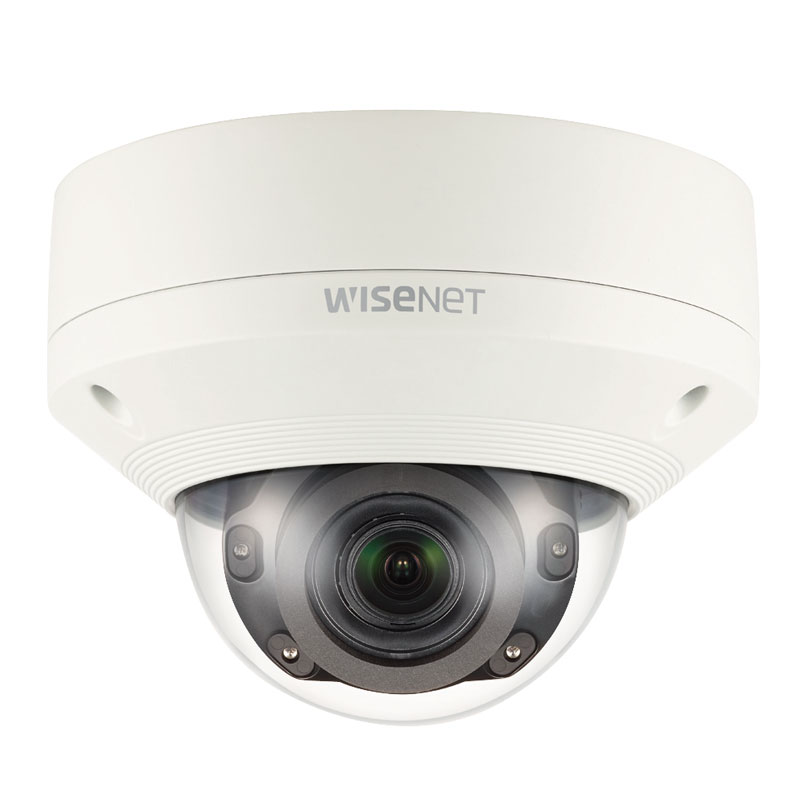 The Hanwha HAN-XNV-8080R camera is a high-performance outdoor dome camera that boasts a 5-megapixel resolution, providing crystal clear images. It features a 3.9 - 9.4mm motorized varifocal lens and supports up to 30 frames per second at all resolutions. The camera utilizes H.265, H.264, and MJPEG codecs for multiple streaming and includes Day & Night (ICR), Wide Dynamic Range (WDR) of 120dB, and Defog capabilities for superior image quality in various lighting conditions.