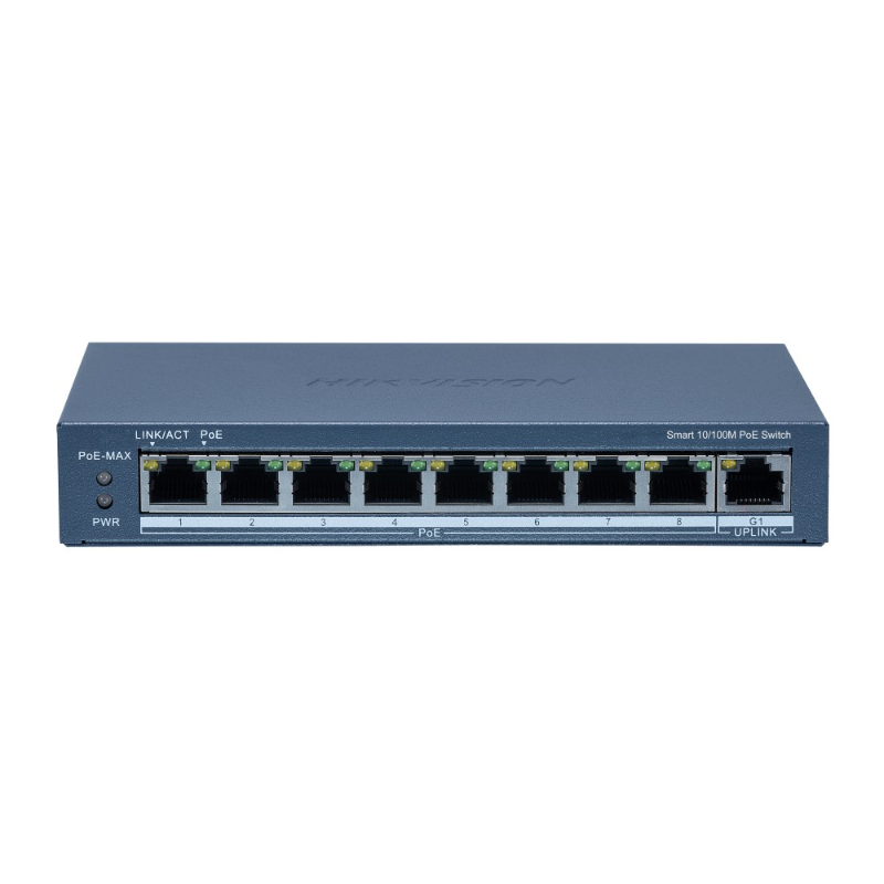 The HIK-3E1309P-EI is Hikvision's 8 port fast Ethernet smart POE switch. Based on wirespeed forwarding, the switch supports Ethernet PoE power supply and extend mode. The power supply distance reaches as long as 300m. It also supports prior and stable transmission of the important surveillance area video when connected to the high priority ports.