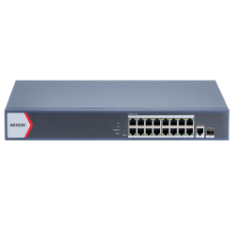 The Hikvision HIK-3E1318P-EI is a 16-port fast Ethernet smart PoE switch with 2 gigabit combo uplink ports, designed for medium-to-large CCTV deployments.