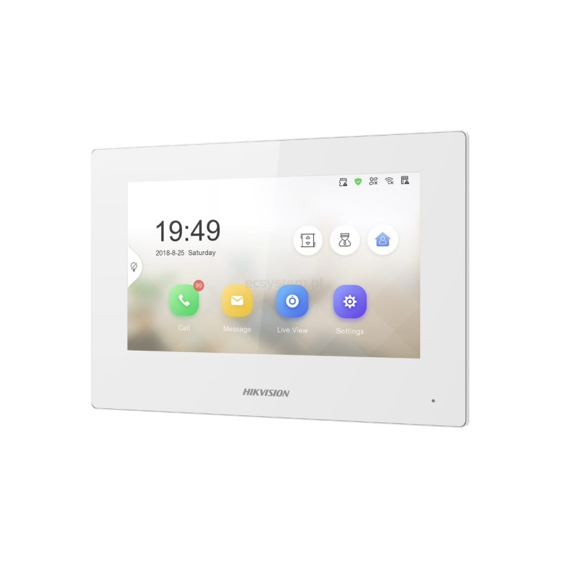 The Hikvision HIK-KH6320-LE1W is a 7-inch colour room station. It is designed to work with the flexible 2nd Generation range of IP intercoms.