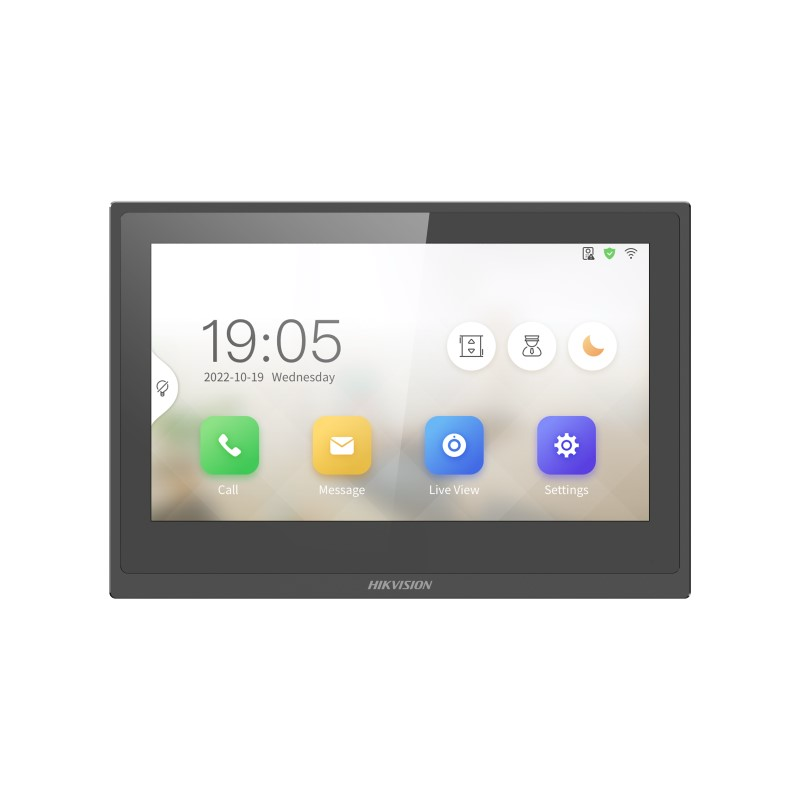 The HIK-KH6351-WTE1 room station is part of the 2nd Generation Hikvision intercom range and comes with a stylish black metal, slim bezel frame. It can be added to the Hik-Connect mobile app for remote answering, viewing, and unlocking.