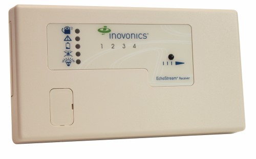 The Inovonics four zone add-on receiver with relay outputs programs and supervises up to four Inovonics transmitters. This receiver includes Form C relays for each output, allowing connection to any hardwire panel, or stand-alone wireless application.