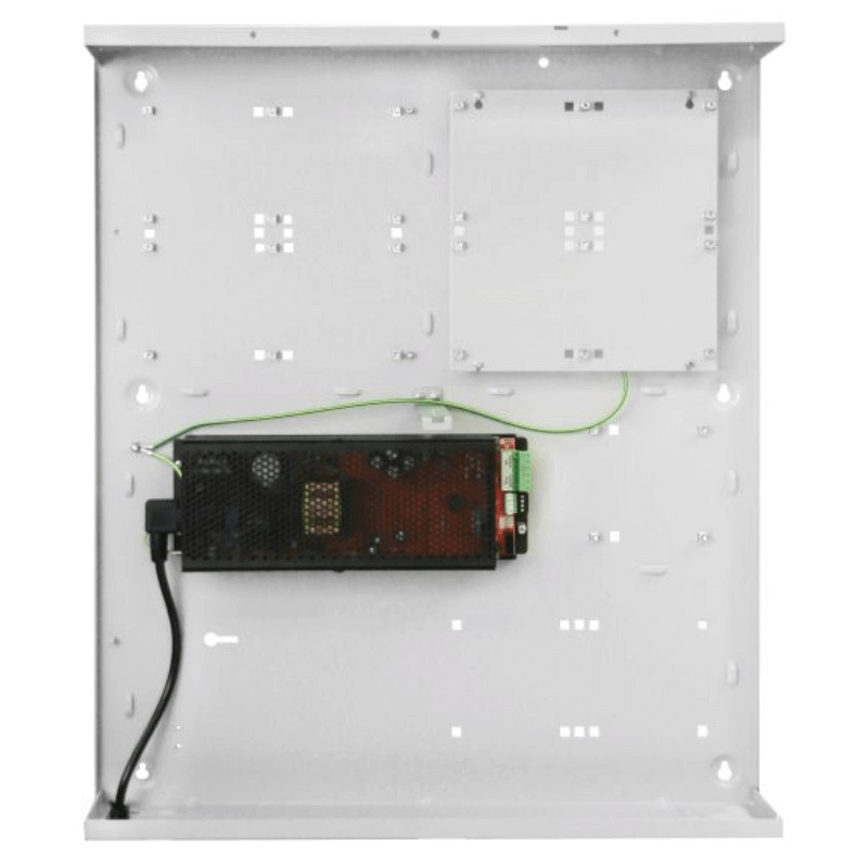 The Inner Range wide body enclosure is a key lockable sturdy metal enclosure designed for installation of Integriti Access Control solutions where all the Integriti equipment, 3-, 8- or 10-Amp power supply and backup batteries can be contained within a single tamper monitored enclosure. The enclosure will house all the equipment required for as many as 8 doors. Multiple enclosures can be installed throughout a building of any size to provide access control for the entire facility while keeping the total quantity of installed enclosures to a minimum. The 10 Amp 13.75VDC Power Factor Corrected (PFC) Smart Power Supply Unit (PSU) is a highly efficient power supply solution designed to meet the modern high-spec requirements unique to access control and intruder systems. Monitoring the power supply status is pivotal to the operation and performance of any security system, and the Inner Range 10 Amp smart PSU delivers this very effectively
