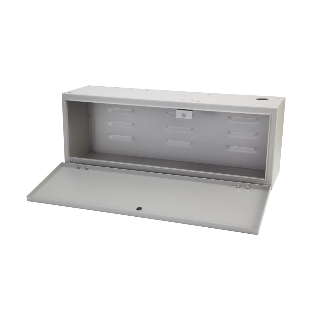 The IR-995231 is a battery case made of 2mm cold rolled steel. It provides a rear vented housing for at least 2 sealed lead acid batteries and bolts to the bottom of the IR-995230. A tamper switch is included in the installation kit and there is provisioning to add a standard or restricted key lock.