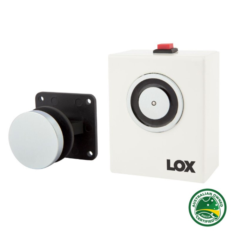 The LOX-R40 door hold open magnets are operating on a fail-safe principle similar to common electromagnetic locking devices. Doors equipped with the LOX-R40 hold open magnets are perfect on doors in an open and frequently used position. They allow the general public and pedestrians ease of access and can be released by dropping the power to the device. The R40 series devices are wall mounted.