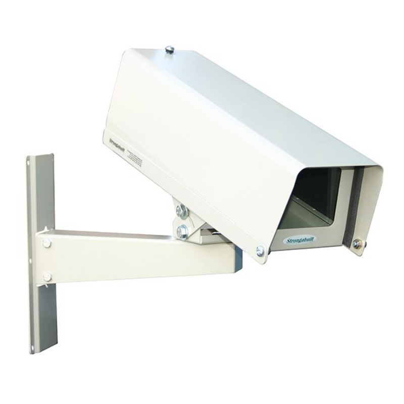 The pivoting lid swings clear of the lens to allow camera access and set up with the cover open. In this design the installer has full access to the sides, top and rear of the camera and lens. The camera is mounted on a clamped plate for fast install and removal.