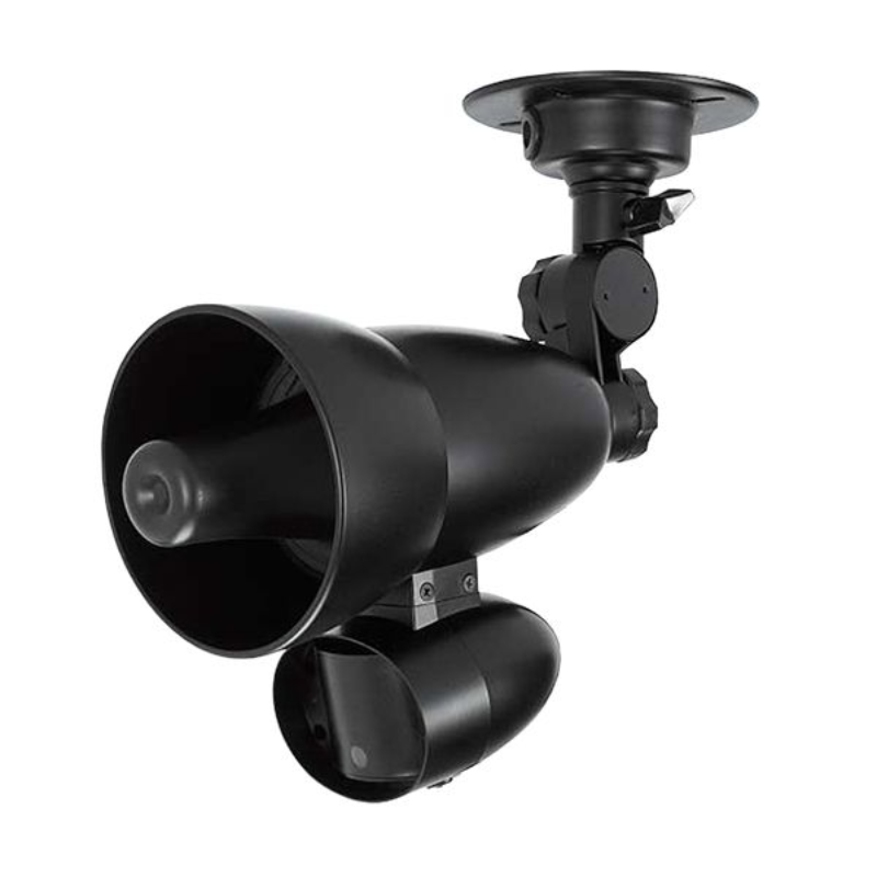 Takex's range of speaker sensors are commonly used to provide welcoming messages at building entrances, to protect emergency doors in shopping centres/hospitals/public buildings etc., to deter would-be intruders in security applications, or to trigger alarm/warning messages at construction sites and other hazardous areas. The AV-100E in particular is a horn-type speaker with built-in microphone. A N/O input is required to trigger the playback of your recorded message.