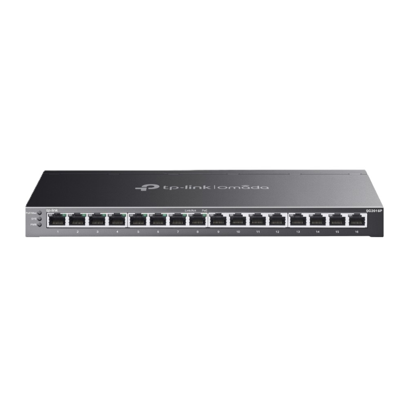 The TP-Link TPL-SG2016P is a 16-Port gigabit smart switch with 8 PoE+ ports, designed for small to medium-sized business networks requiring high-speed connectivity and centralised management. This switch is a reliable and scalable solution for expanding wired networks while simplifying power delivery to connected devices.