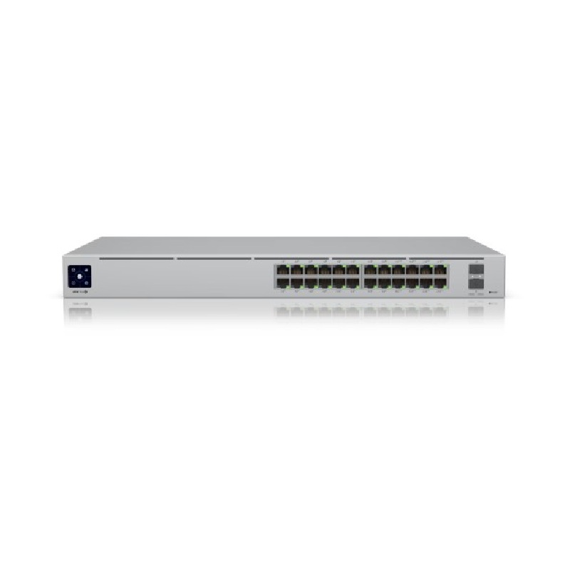 The UB-USW-PRO24-POE is Ubiquiti's UniFi Switch Pro 24 PoE, a 24-port, Layer 3-capable, Gen2 UniFi switch with high-power PoE+ and PoE++ output, 10G SFP+ uplinks, and a 400W total PoE budget. It is designed for professional UniFi deployments requiring strong PoE delivery, fiber uplinks, and advanced switching features.