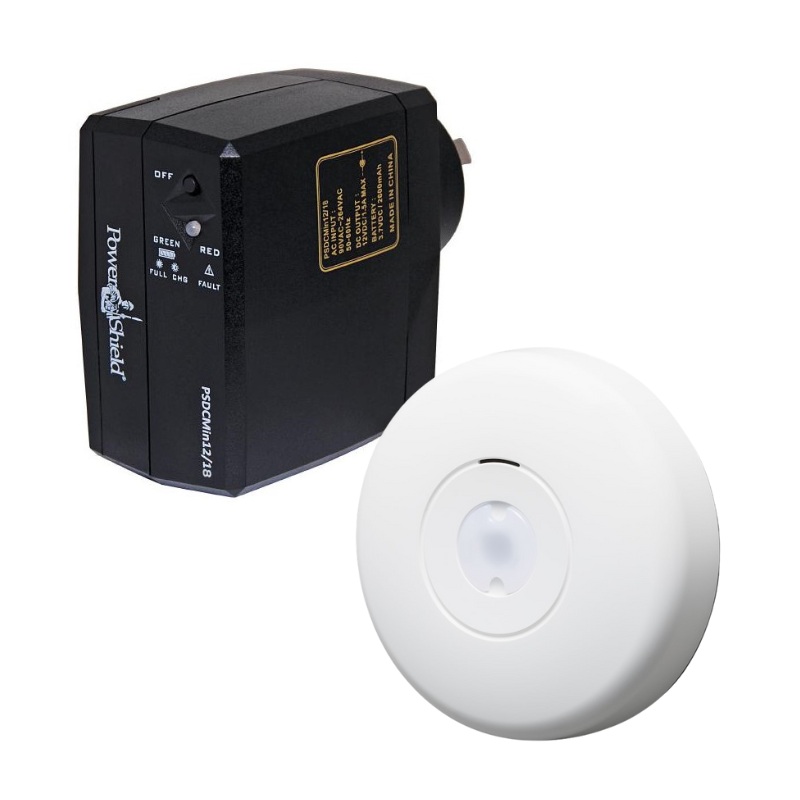 The WAS-PSH-TAK-KIT kit combines the PowerShield PSH-PSDCMINI12V UPS with the Takex TAK-VS-1000E Vape Sensor, offering reliable backup power and advanced vape/smoke detection in one package.