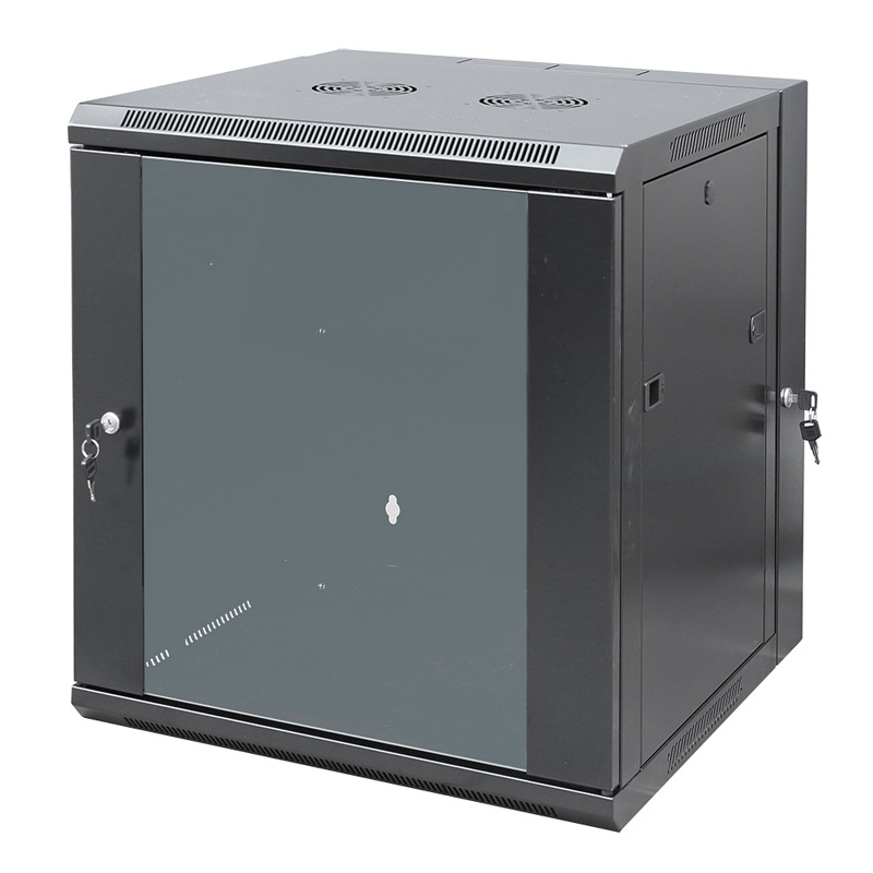The X2-RACK-601 is a 12RU industry standard, 19 inch double section wall mount rack. This cabinet comes complete with a lockable tempered glass front door, removable side panels and cable entries from the top and bottom.