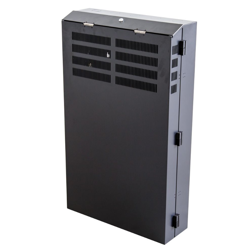 The X2 vertical wall mount NVR cabinet has been designed specifically to meet the demands of CCTV installations where there is not enough physical space for a traditional 19" rack mount cabinet but the environment requires a secure and locked enclosure to mount the NVR away from tampering or theft. The RACK-900 provides 4RU vertical space for mounting the NVR and 2RU horizontal space for mounting a patch panel. Allowances have been made for good ventilation and optional fans can be ordered for installations that may be required in hot environments.