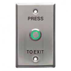 Exit Button, Small Mushroom, Illuminated, Green, Architrave Plate, Fly Leads
